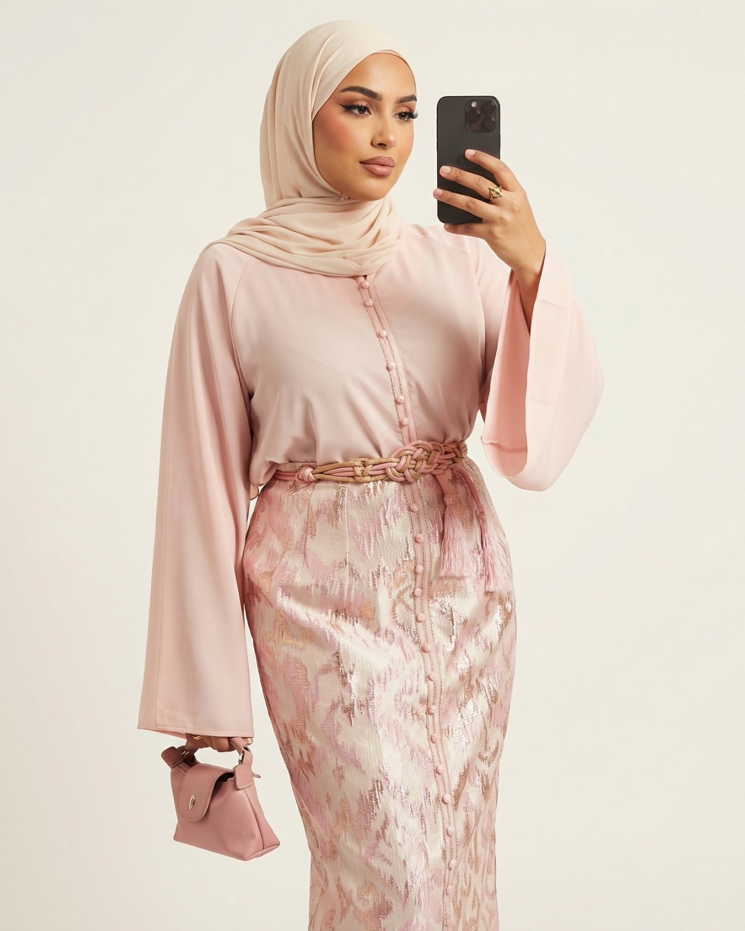 Ensemble jupe brocart “Rose Poudré” – Style Caftan